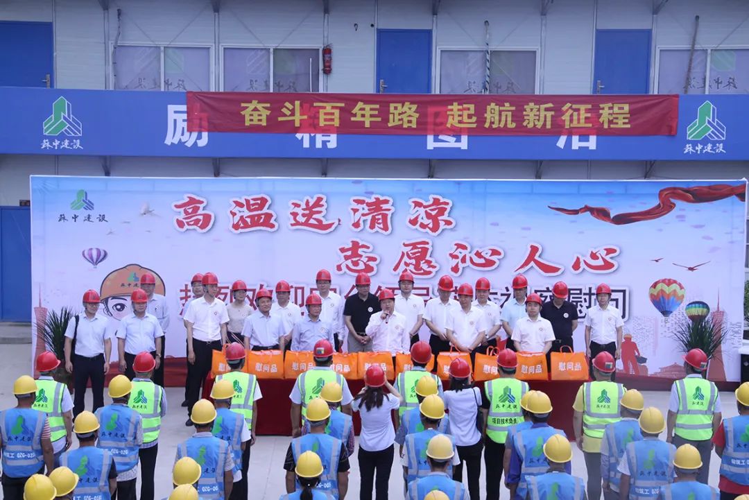 7月7日,海安市委副書記、市長譚真率隊蒞臨蘇中建設承建的商丘蘭臺府項目,開展“高溫送清涼,志愿沁人心”夏季高溫慰問及建筑業調研交流活動。市人大常委會主任張亞曦,市委常委嚴長江、郝三旺,市發改委、教體局、財政局、自然資源局、農業農村局、商務局、衛健委、市場監管局、建管局、總工會等部門主要負責人參加活動。蘇中建設總裁陳永明、副總裁李瑞榮、中原區域公司副總經理徐海平、第七工程公司經理張海榮、河南分公司經理馬小波等陪同慰問。